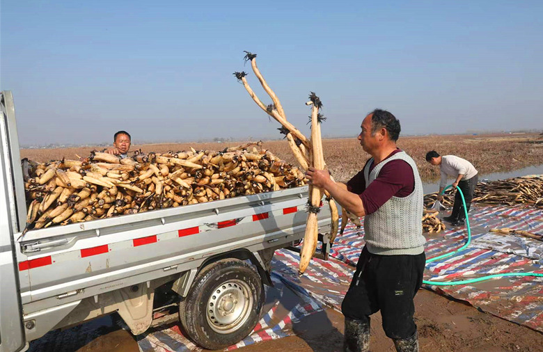 新春走基层|湖南岳阳:湖藕丰收采摘忙