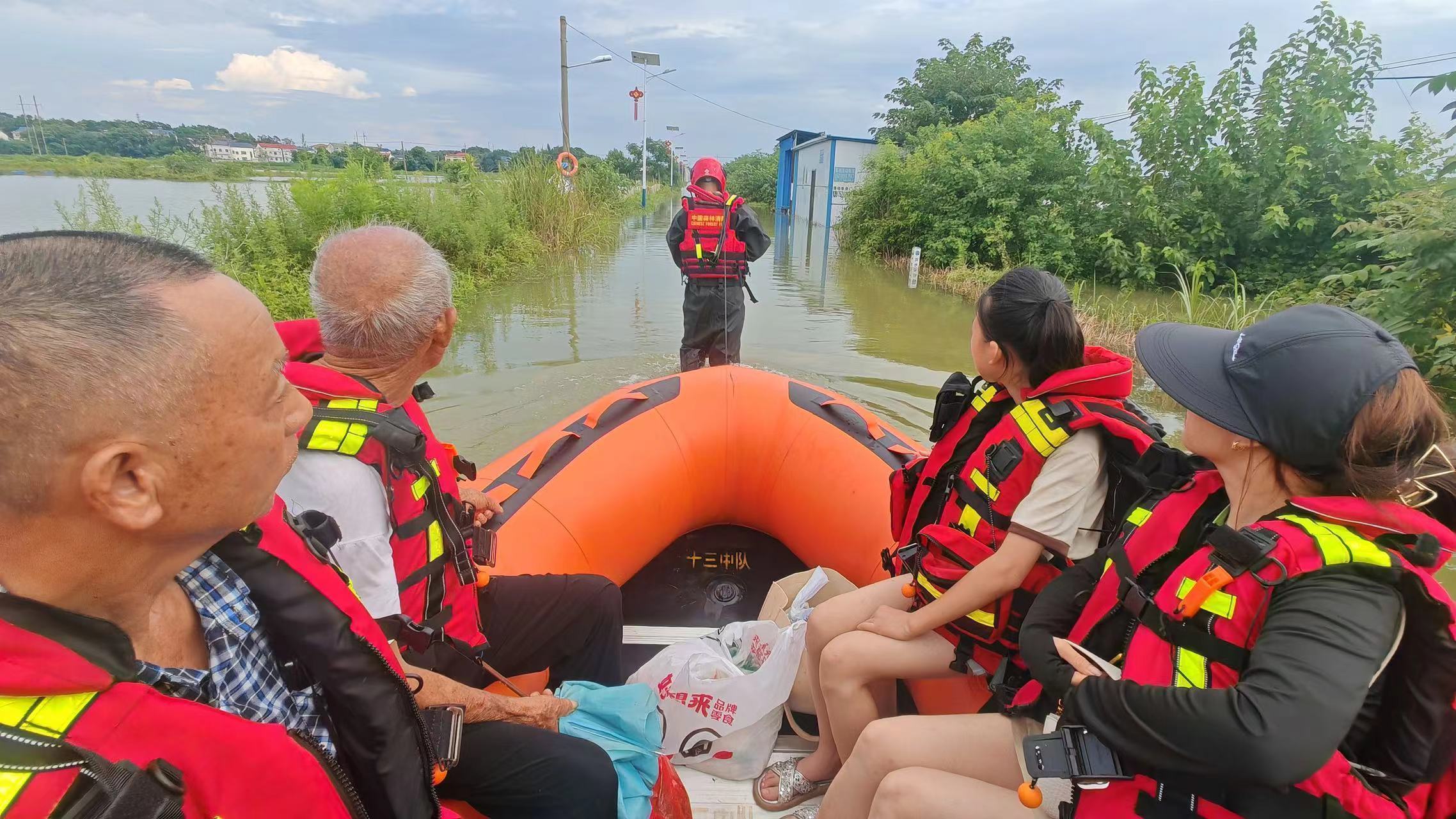 因强降雨,岳阳汨罗市罗江镇滨江村、汨东村大面积淹没,现场出现多处人员被困情况。国家消防救援局湖南机动队伍紧急调派4辆抢险救援车、18名消防救援人员赶赴现场救援。到达现场后,消防救援人员利用皮划艇,营救转移被困人员。俞东卫 摄