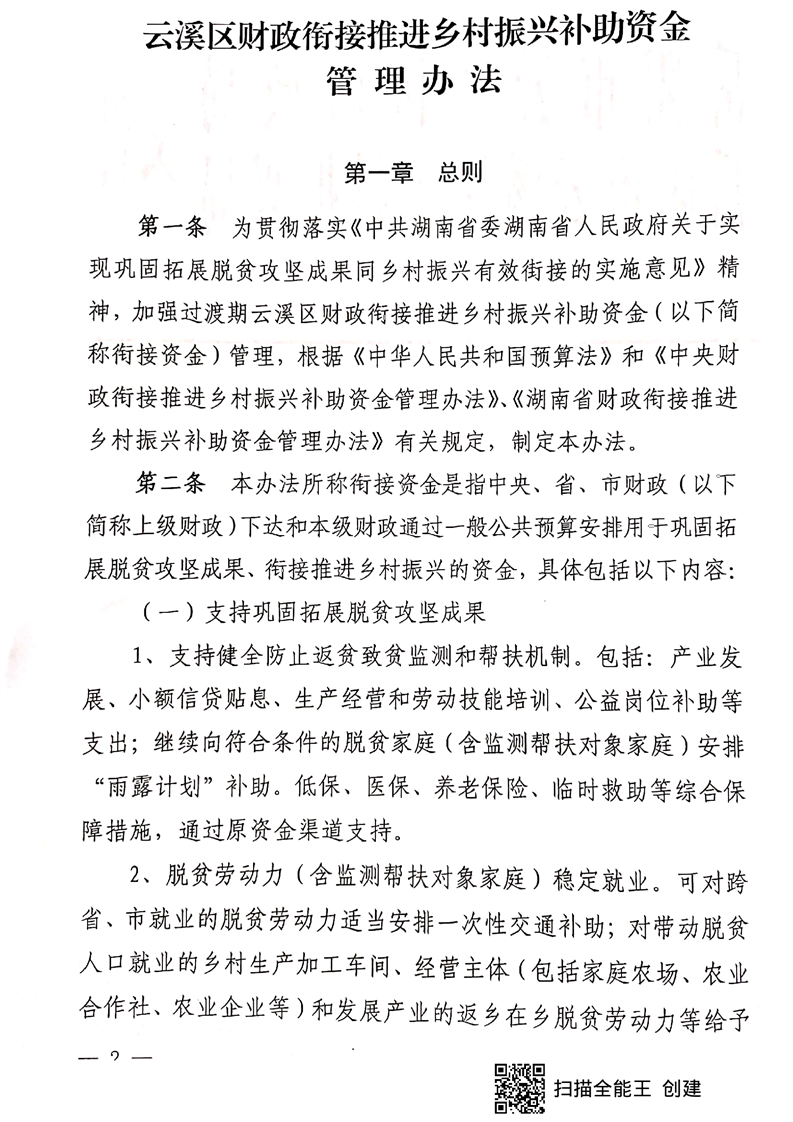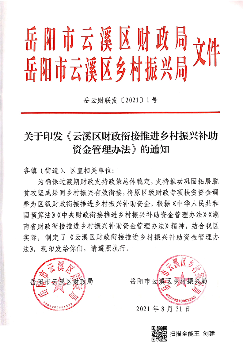 区财政局区乡村振兴局关于印发《云溪区财政衔接推进乡村振兴补助资金管理办法》的通知