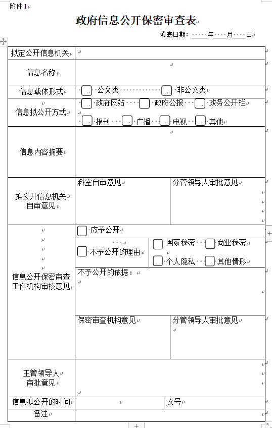 1.建立健全本行政机关政府信息公开保密审查工作制度。