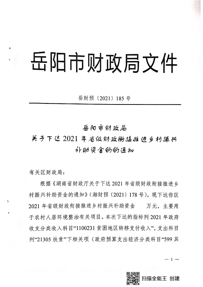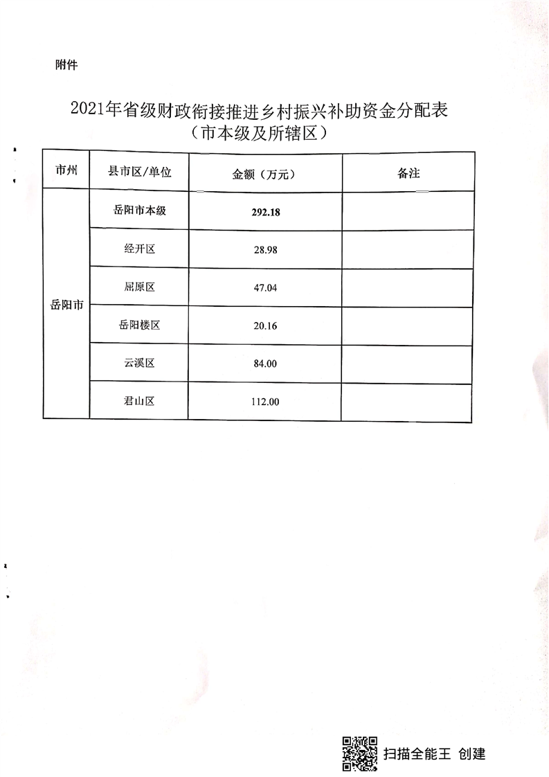 市财政局关于下达2021年省级财政衔接推进乡村振兴补助资金的通知