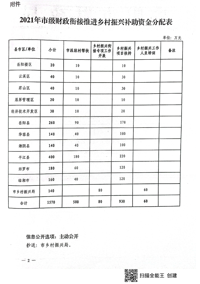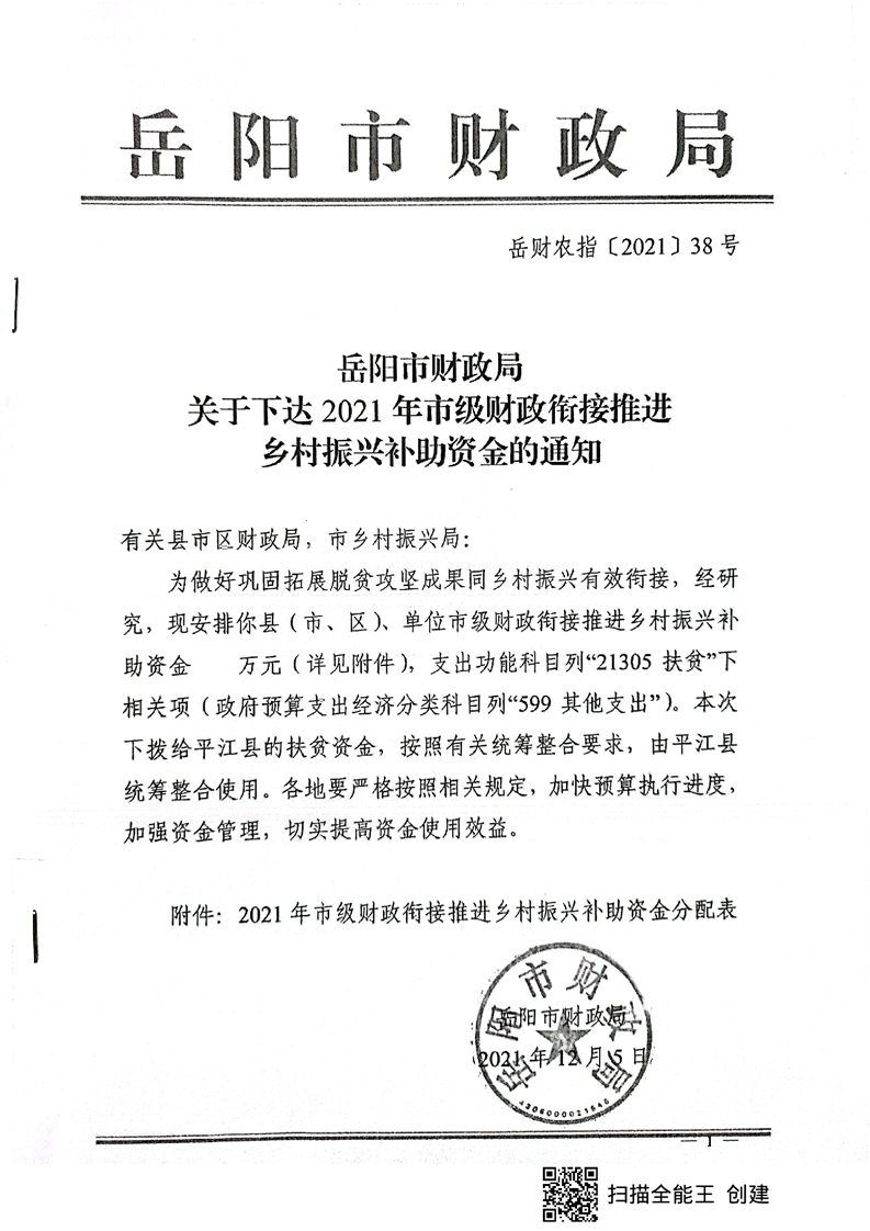 市财政局关于下达2021年市级财政衔接推进乡村振兴资金的通知