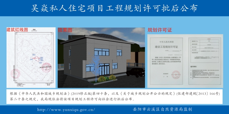 吴焱私人住宅项目工程规划许可批后公布