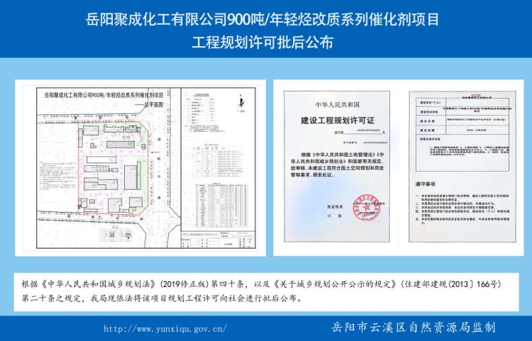岳阳聚成化工有限公司900吨/年轻烃改质系列催化剂项目工程规划许可批后公布