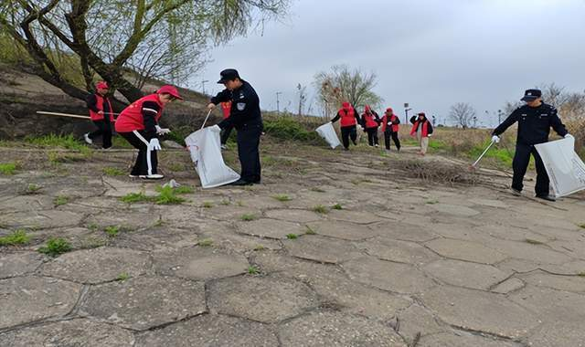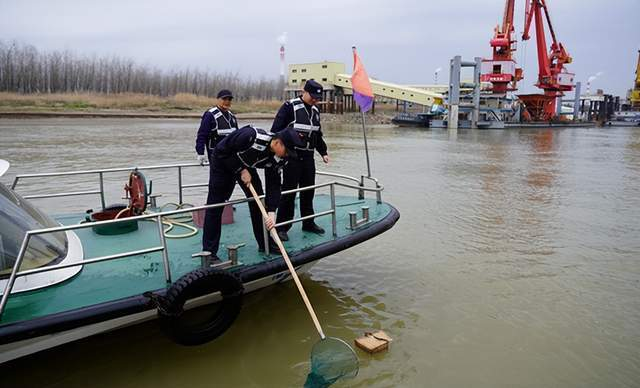 为持续推进河湖“四乱”突出问题清理整治,督促河湖生态环境问题整改,全力打造河畅、水清、岸绿、景美的水域生态环境,3月21日,长江航运公安局岳阳分局陆城派出所、云溪区水利局、长江岳阳航道处等多家单位联合对云溪区河湖岸线垃圾违规堆放、填埋等乱象进行集中整治。 联合执法人员在百盛码头附近列队集合、准备行动 整治中,执法人员与志愿者们分工明确,密切配合,分两组展开集中整治行动,一组志愿者乘坐公务艇打捞长江近岸水面漂浮物等水体垃圾、摸排非法捕捞、非法采砂等违法犯罪线索;另一组志愿者沿百盛码头附近堤防岸线清理岸线垃圾、废弃公示牌、劝导违规垂钓行为。志愿者们以高度的责任感,有效清理了江面及岸线垃圾,对违规垂钓人员进行了普法教育,整个整治行动有序开展。
