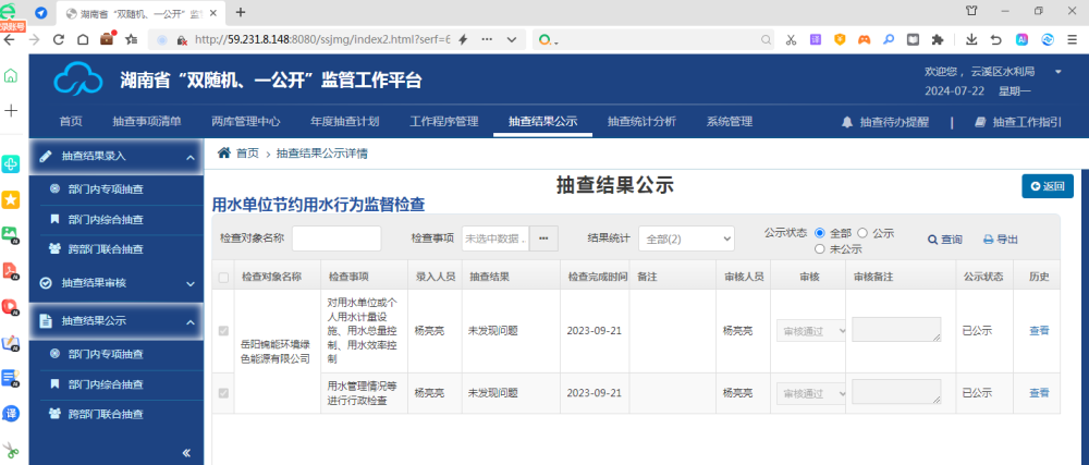 用水单位节约用水行为监督检查抽查结果公示