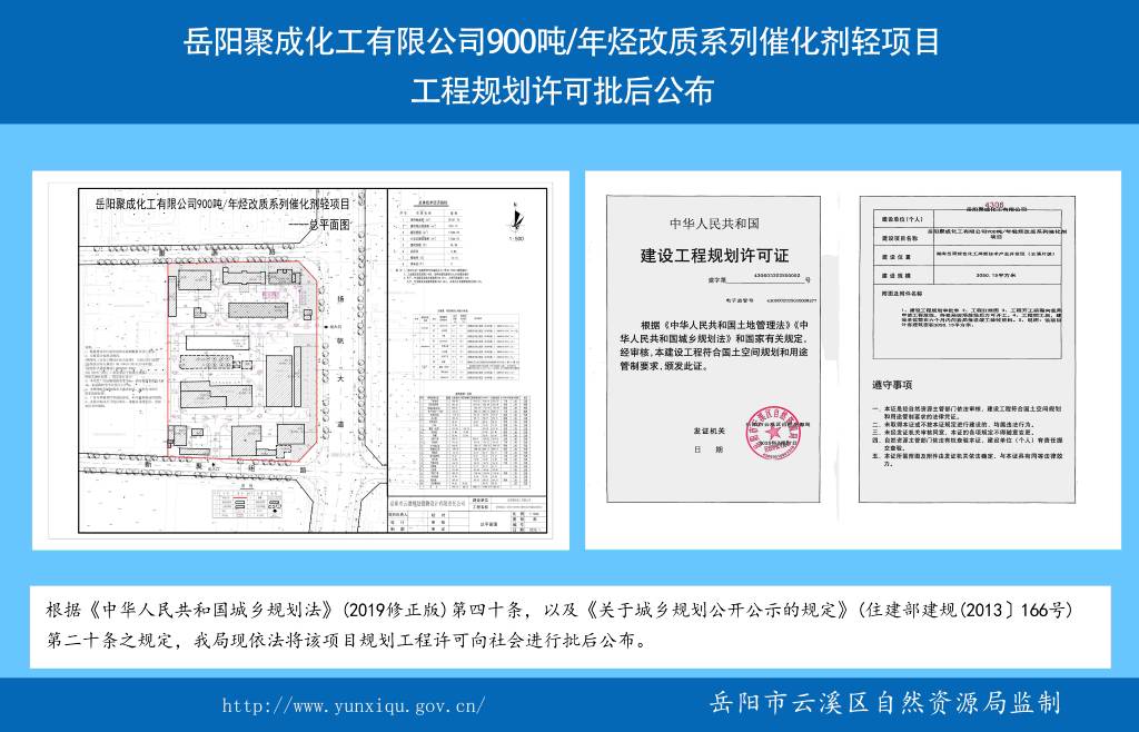 岳阳聚成化工有限公司900吨/年烃改质系列催化剂轻项目工程规划许可批后公布